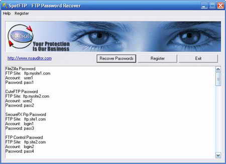FTP Navigator, CoffeeCup Direct FTP 等的用戶密碼。