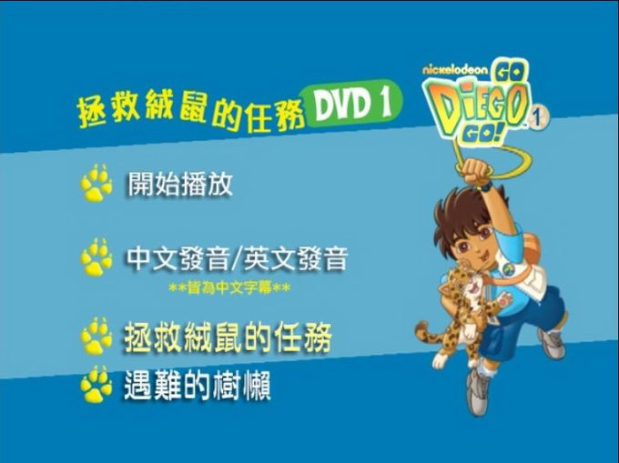 軟體名稱: 卡通:Go Diego Go DVD 第1集(拯救絨鼠的任務 遇難的樹藾)