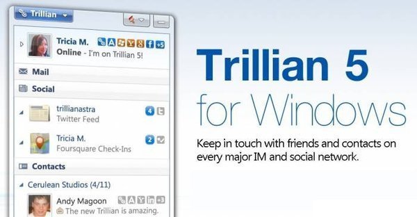 Trillian是一款高度集成的聊天用戶端軟體,目前支援IRC、AIM、ICQ、MSN和